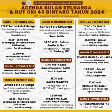 Menyemarakkan Bulan Keluarga GKI Bintaro selama bulan Oktober 2024, Panitia mengundang jemaat dan simpatisan menghadiri dan berpartisipasi dalam setiap ...
