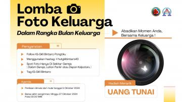 Panitia Bulan Keluarga dan HUT GKI BIntaro mengundang jemaat dan simpatisan mengikuti kegiatan Lomba Foto Keluarga. Keterangan lebih lanjut dapat meihat gambar ...
