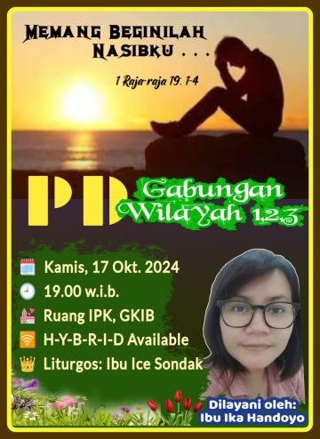 GKI Bintaro mengundang jemaat dan simpatisan menghadiri Persekutuan Doa Gabungan yang akan dilaksanakan hari Kamis, 17 Oktober 2024 jam 19:00 bertempat di ...